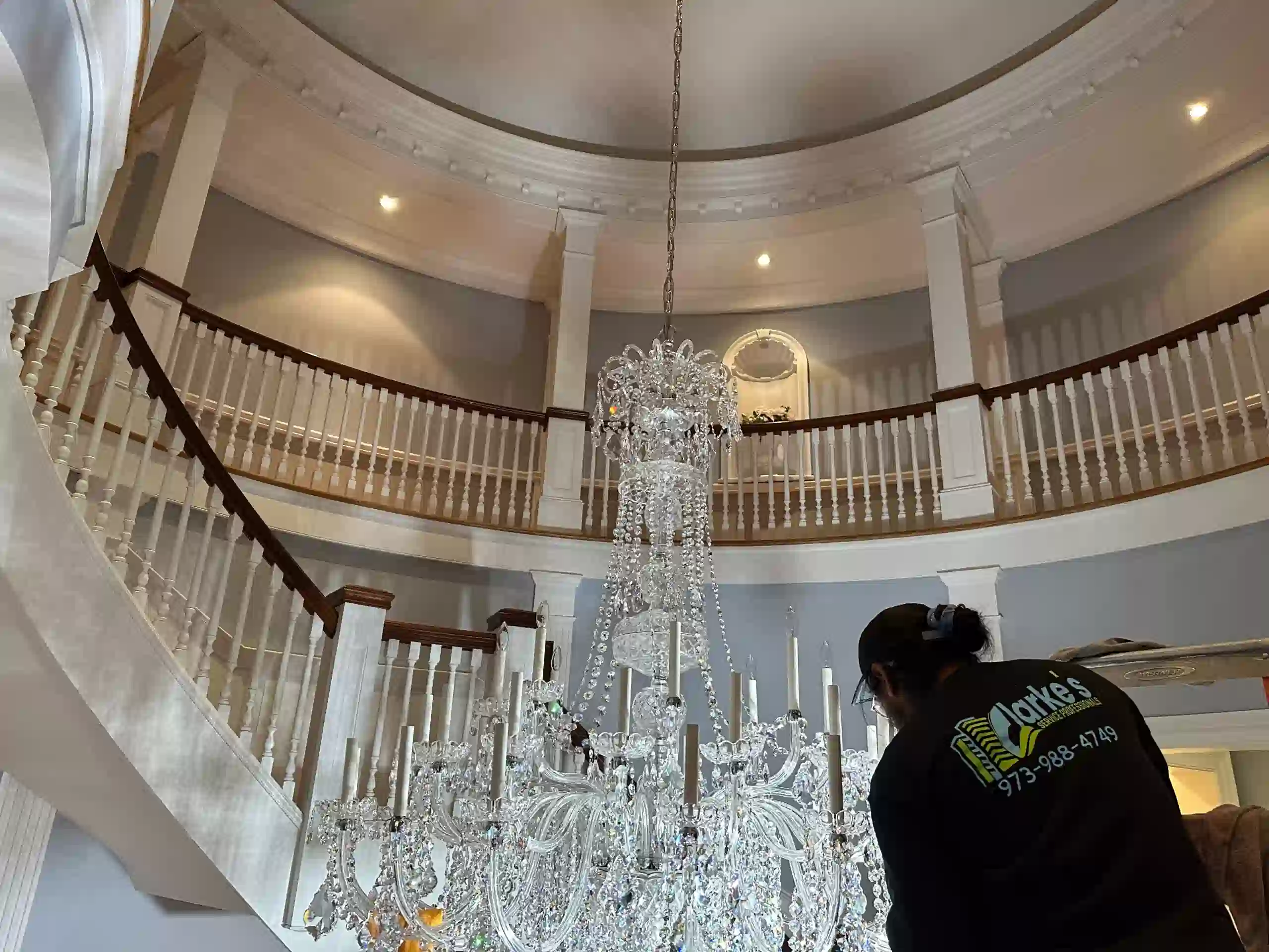 Cleaning chandeliers and light fixtures in high or hard-to-access areas requires specialized equipment, skill, and safety protocols — and that’s exactly what we provide. Whether your chandelier is suspended over a grand staircase, in a multi-story foyer, or inside a commercial atrium, our trained technicians are equipped to handle it safely and efficiently.