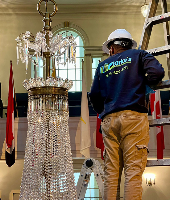 Chandeliers add elegance, beauty, and character to your home—but keeping them clean can be difficult and dangerous without the right skills and equipment. Clarke Service Professionals offers residential chandelier cleaning services that restore brilliance, remove dust and buildup, and ensure your lighting features look stunning year-round.